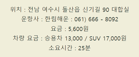 ⛴ 여천선착장 주소: 전남 여수시 남면 금오도 여천리